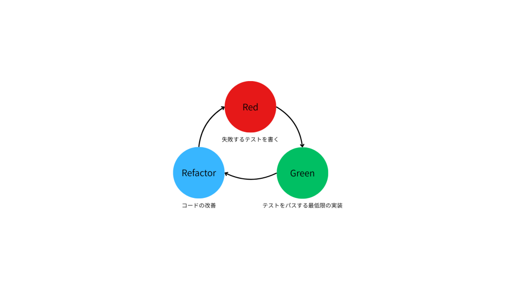 TDDでは、Red → Green → Refactorのサイクルで設計を改善していきます。